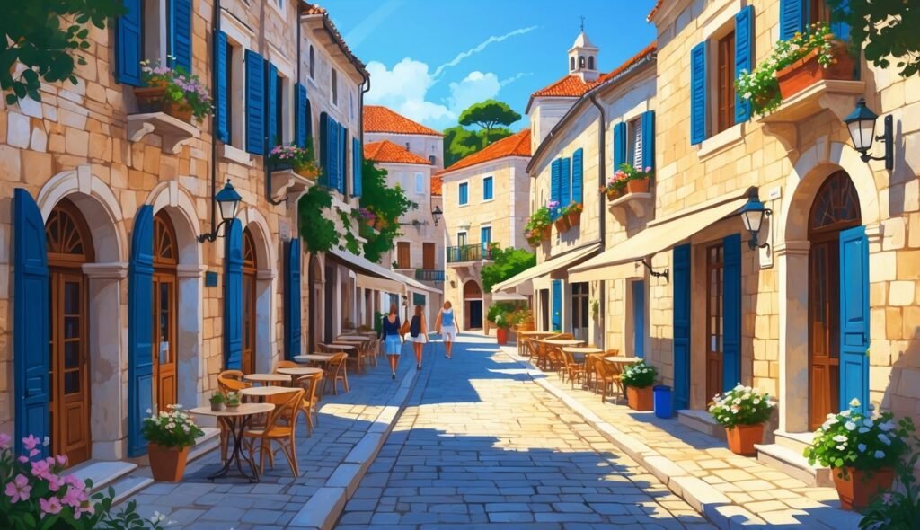 Paved limestone streets and Venetian-style buildings give the city a clean yet historical aesthetic. The mix of preserved ruins and modern public art sets it apart from Croatia’s more commercialized resort towns.